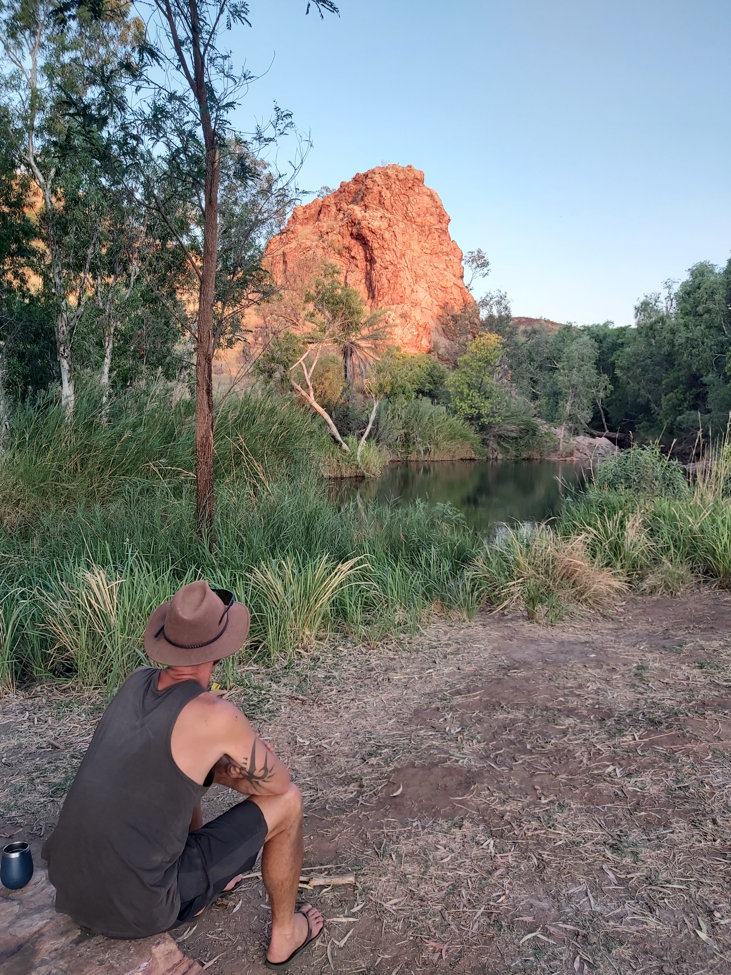 | | A quick bush shower before we left for the 2 hour drive back to Hall's Creek (and the van). |
